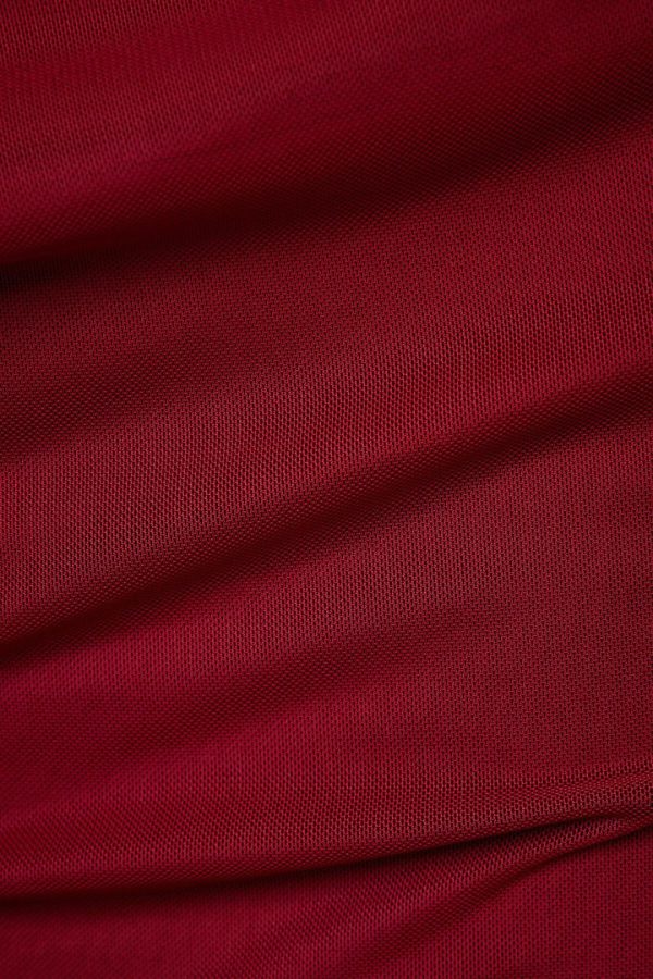 This is a ruched off-shoulder mesh dress – Designed to be fitted to accentuate your form.